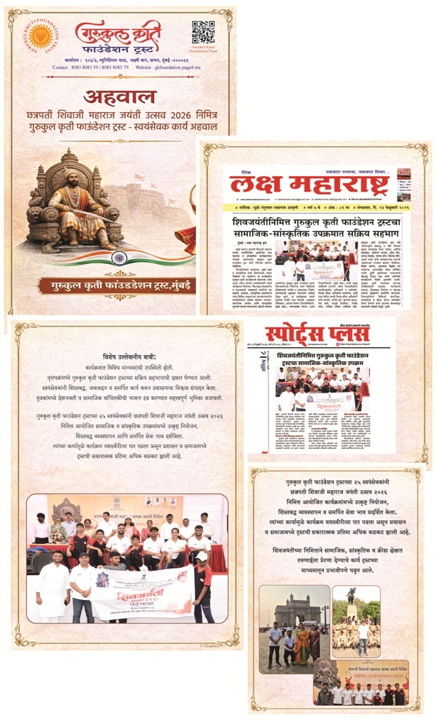 मुंबई शहरात छत्रपती शिवाजी महाराज यांच्या जयंतीनिमित्त आयोजित भव्य पदयात्रा व सांस्कृतिक कार्यक्रमांच्या यशस्वी आयोजनात गुरुकुल कृती फाउंडेशन ट्रस्टने मोलाचा सहभाग नोंदविला.